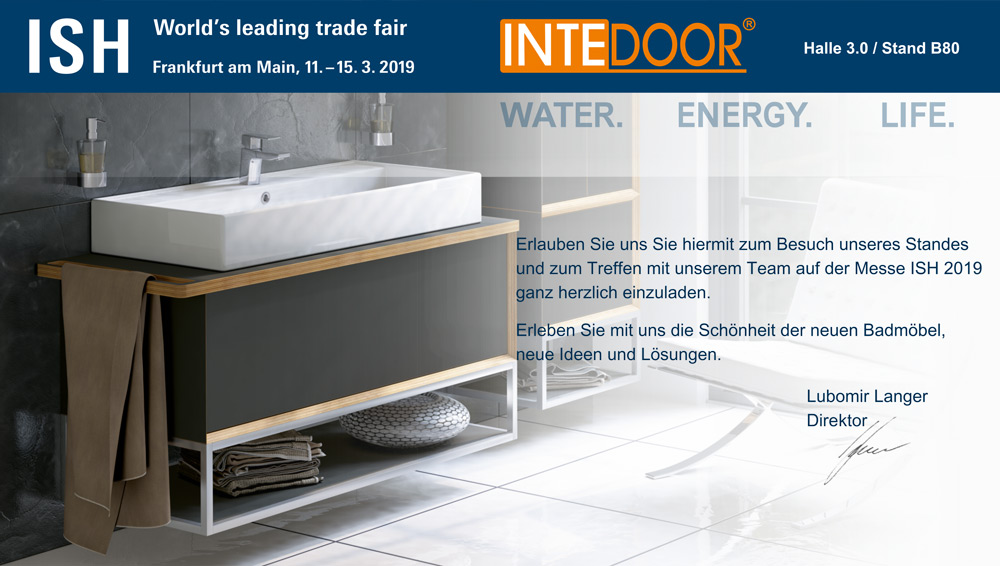 Die Firma INTEDOOR ladet Sie herzlich zur ISH 2019 ein.